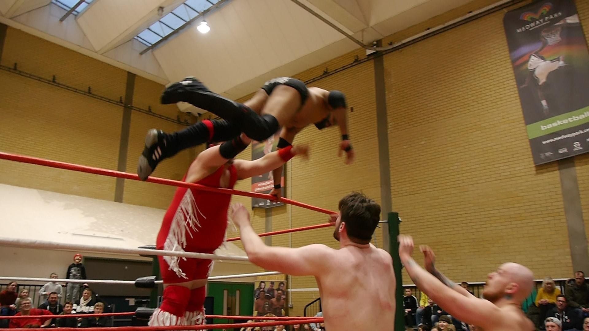 Alexander Roth came out of the gates hot, blasting Dow with everything to end the contest early. However, Fentos at ringside pulled Dow out of the ring and held him up, breaking the 10 count and allowing Dow to continue. Roth's tag team partner, Kieran Kurupt, emerged at ringside to event the numbers. Suddenly, Senior Official Martin Raymondson appeared from nowhere holding a Kendo Stick and chased Fentos out of the sports centre. What followed was a hellacious brawl between Dow and Roth. Steel chairs were used; fire canes were used (and even a fire extinguisher!) Roth finally hit Dow with a Roth Bottom in what seemed like the final blow.